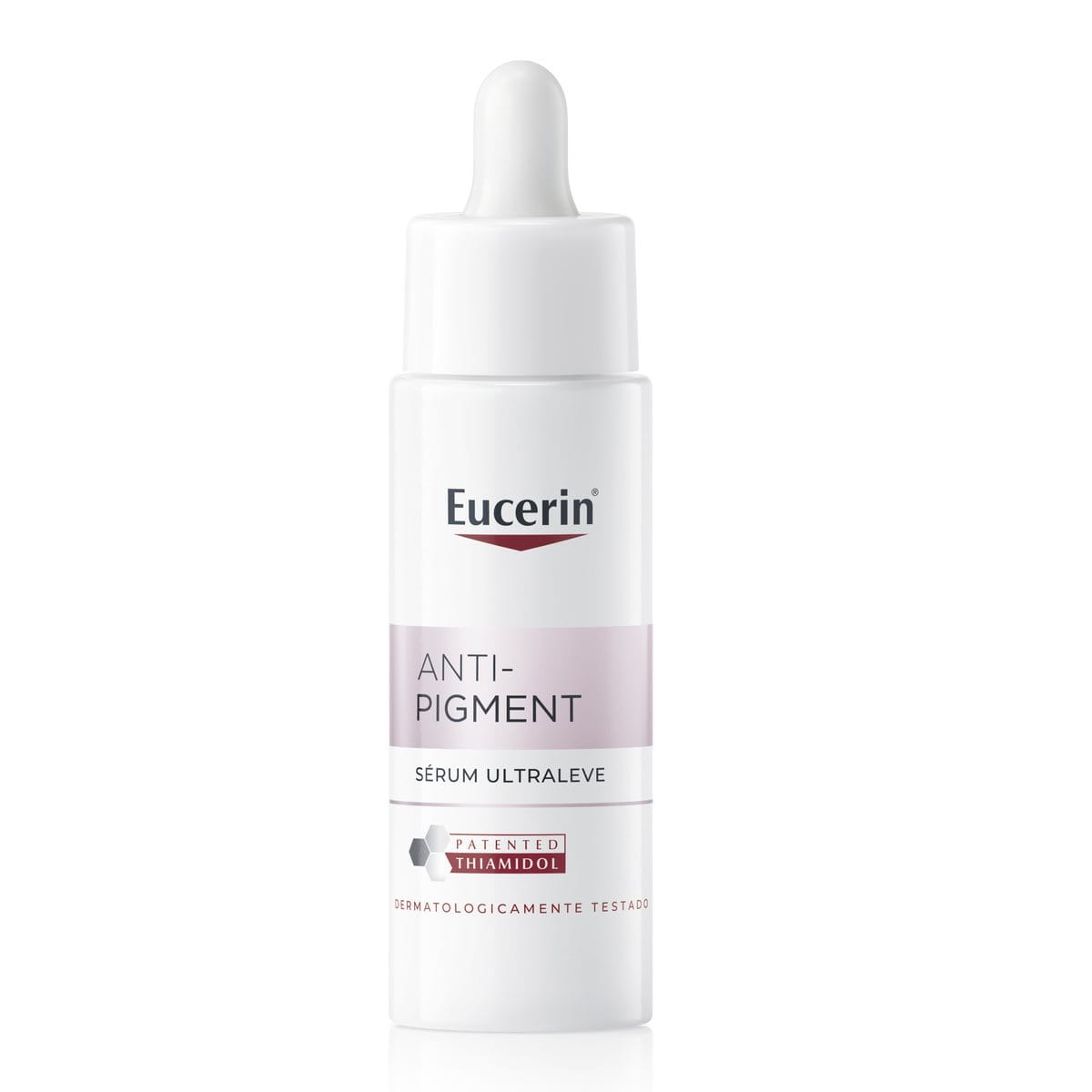 Eucerin Anti-Pigment Sérum Ultraleve é um produto clareador ideal para a redução e prevenção de manchas, desenvolvido com Thiamidol, um ativo reconhecido pelos dermatologistas como o mais eficaz e o único comprovado por atuar na causa raiz das manchas. Sua fórmula também contêm Ácido Hialurônico, que ajuda a preencher rugas e linhas finas, e Crystal Technology, que controla a oleosidade.