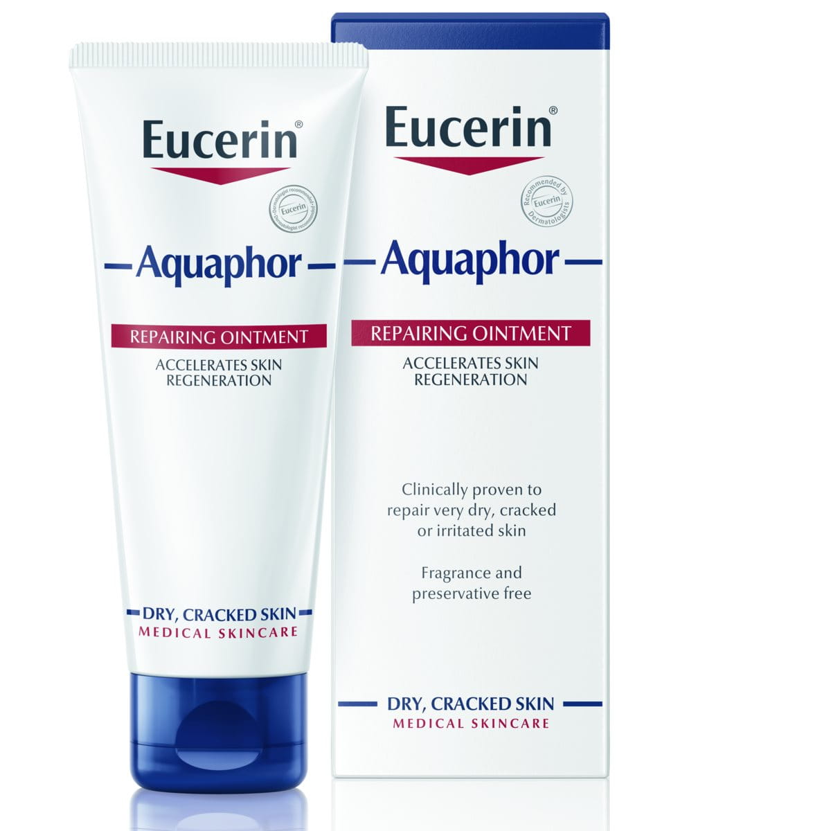 Eucerin Aquaphor Pomada Reparadora Intensiva é o produto ideal para reparar, acelerar a recuperação da pele e hidratar intensamente. Desenvolvido com Pantenol, Glicerina e Bisabolol, melhora a renovação da pele, aliviando imediatamente os sintomas da pele seca. Age formando uma barreira protetora e é ideal para recuperar a pele pós tatuagem, queimaduras leves, cicatrizes, fricção de roupas, mãos e cutículas ressecadas, assaduras, arranhões etc. Um verdadeiro produto coringa que também hidrata intensamente, tornando a pele macia e com aparência saudável.