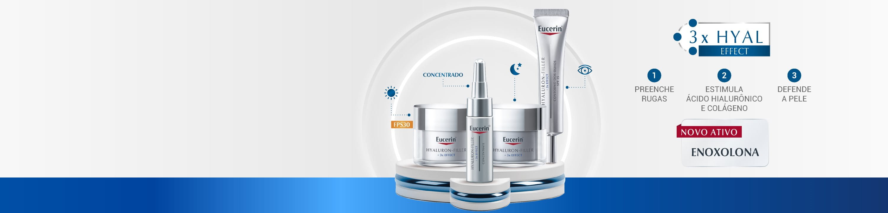 Eucerin Hyaluron-Filler com fórmula 3x Effect foi especialmente formulado para neutralizar este processo: