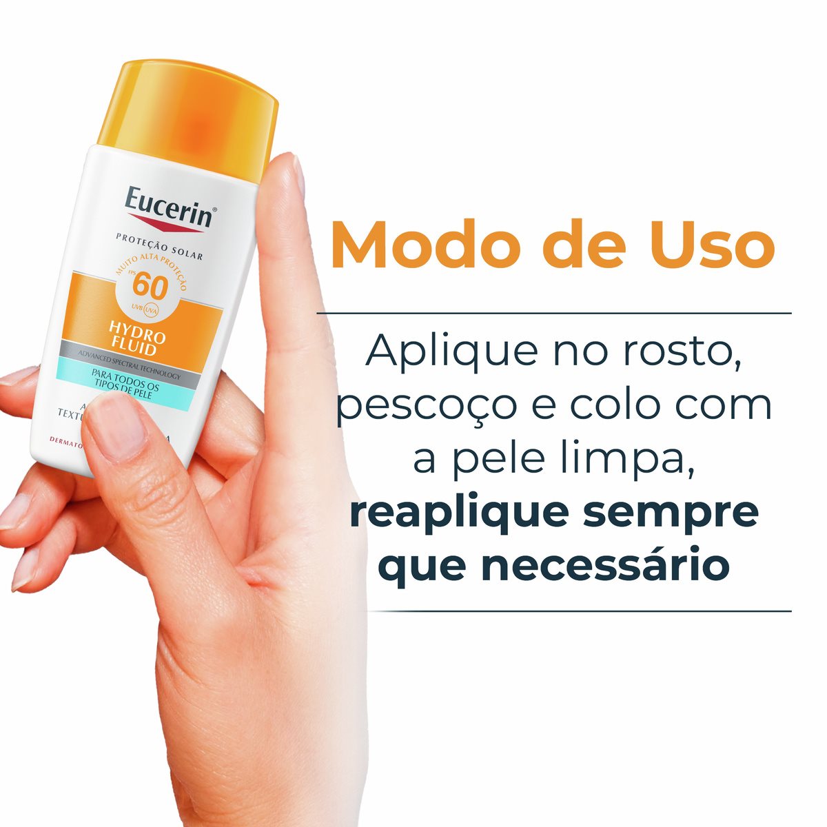 Eucerin Sun Hydro Fluid FPS 60 oferece proteção muito alta e foi especialmente formulado para todos os tipos de pele.